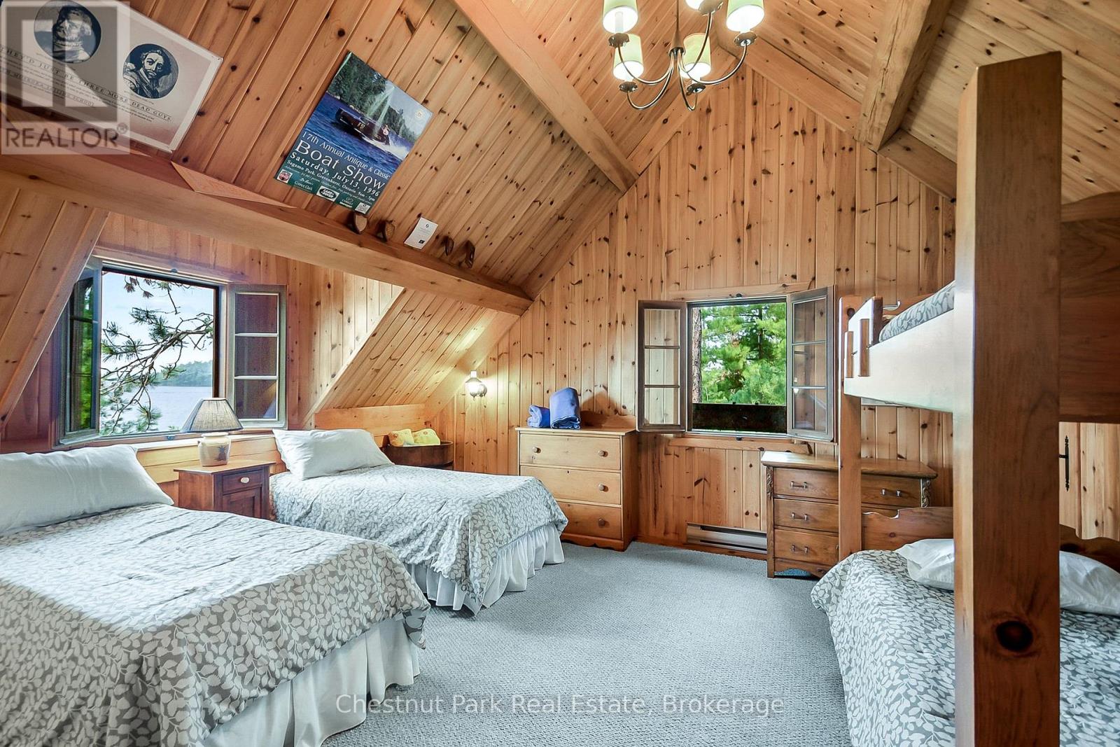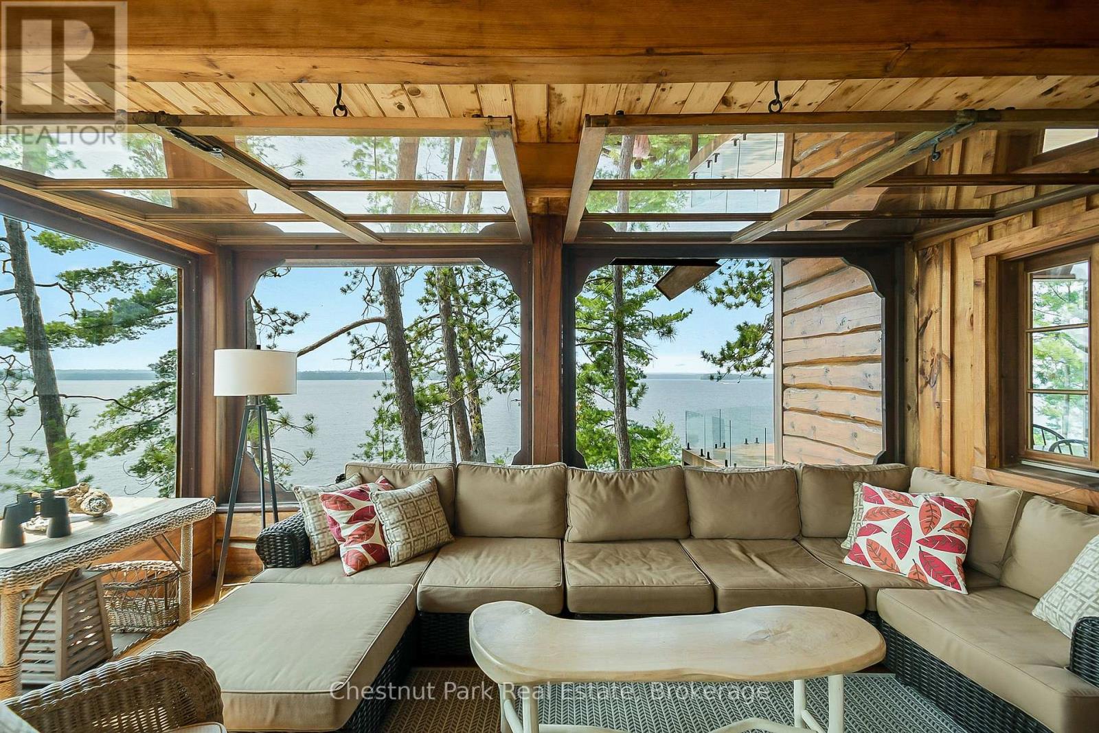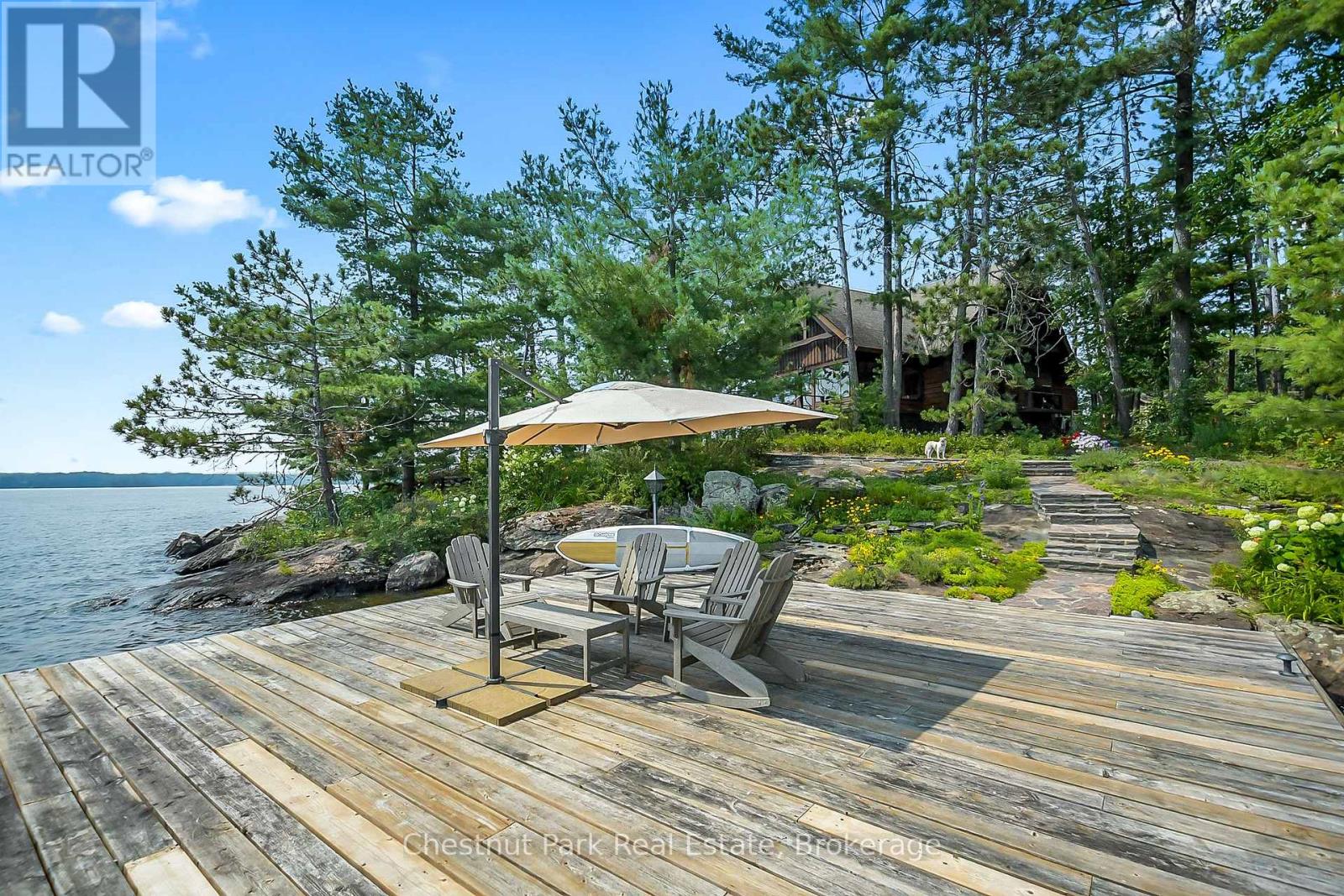 Discover the ultimate in seclusion and serenity with this rare opportunity to own your very own private island on coveted Lake Muskoka. Spanning approximately 2 acres, this unique property offers unmatched privacy, making it the ideal retreat for those seeking an escape from it all, with no other owners or cottages on the island, the space is exclusively yours. A short, scenic boat ride from the marina brings you to the island, where a four-bedroom, 2.5-bath cottage awaits. The interior blends comfort and charm, highlighted by a spacious Muskoka room and expansive deck with glass railings, allowing for uninterrupted views of the shimmering lake. The island is designed for both relaxation and exploration, with winding trails throughout and multiple vantage points, including the incredible Sunset Point, where each evening ends with a breathtaking, panoramic display. Two well-maintained sheds provide ample storage but offer the potential to be converted into bunkies for additional sleeping space. A well-built dock with a boat slip accommodates up to two covered boats, ensuring your watercraft is always ready for adventure. While the cottage is currently a three-season getaway, a simple hot water line upgrade could extend your enjoyment into all four seasons, offering year-round access to one of Muskoka's most treasured locations. This private island retreat offers a rare combination of privacy, natural beauty, and potential, a unique opportunity to create your dream escape in the heart of Lake Muskoka. (id:4069)