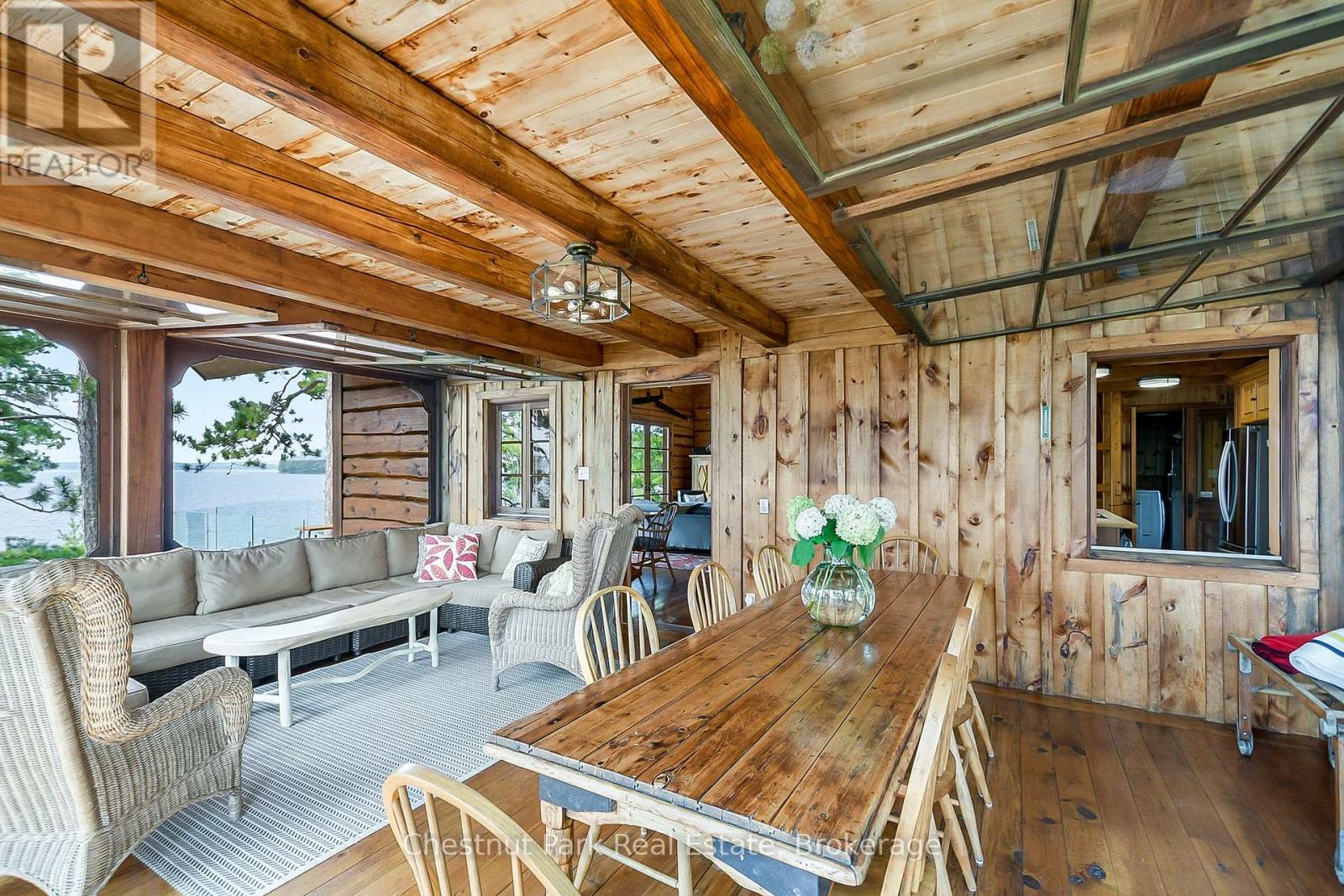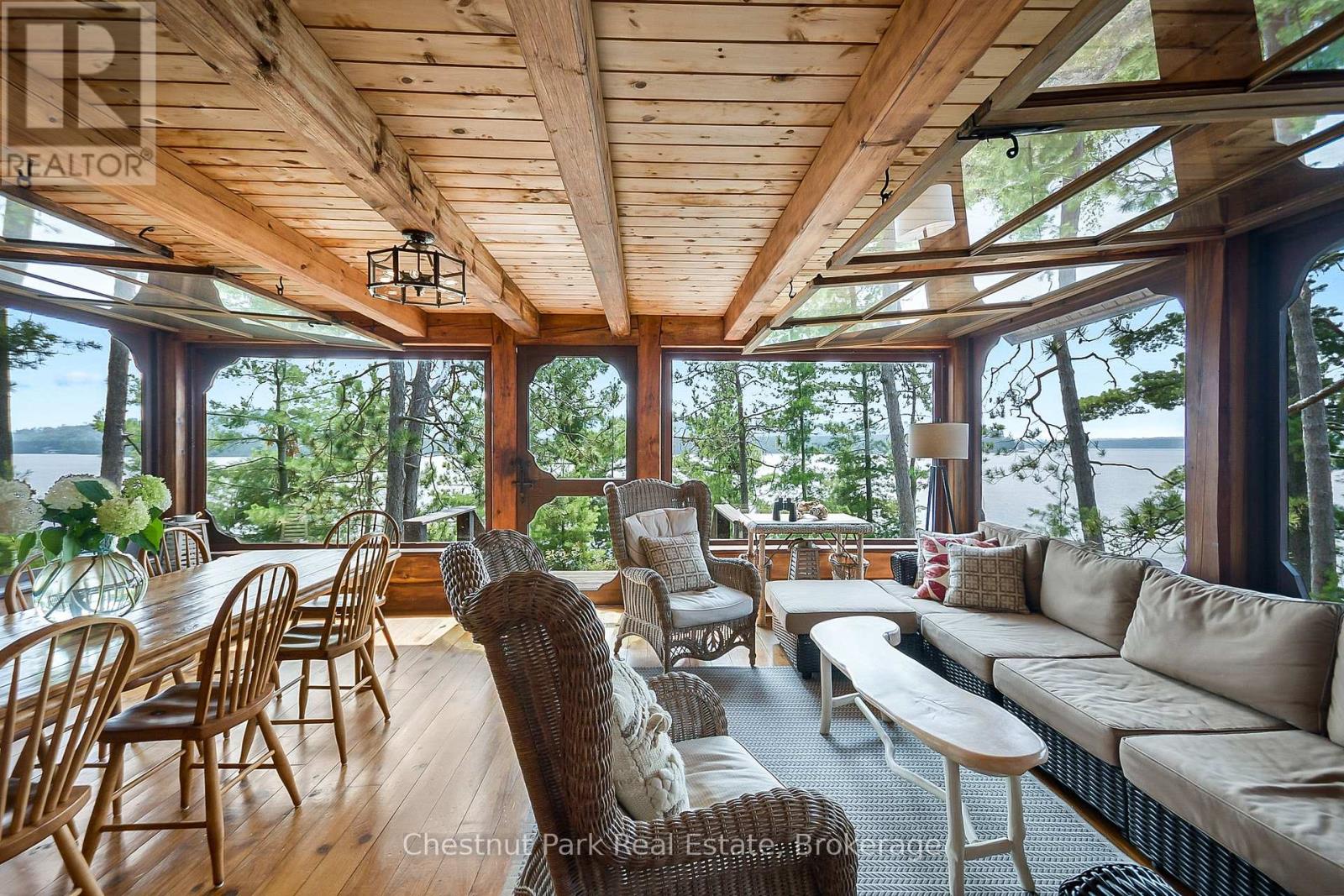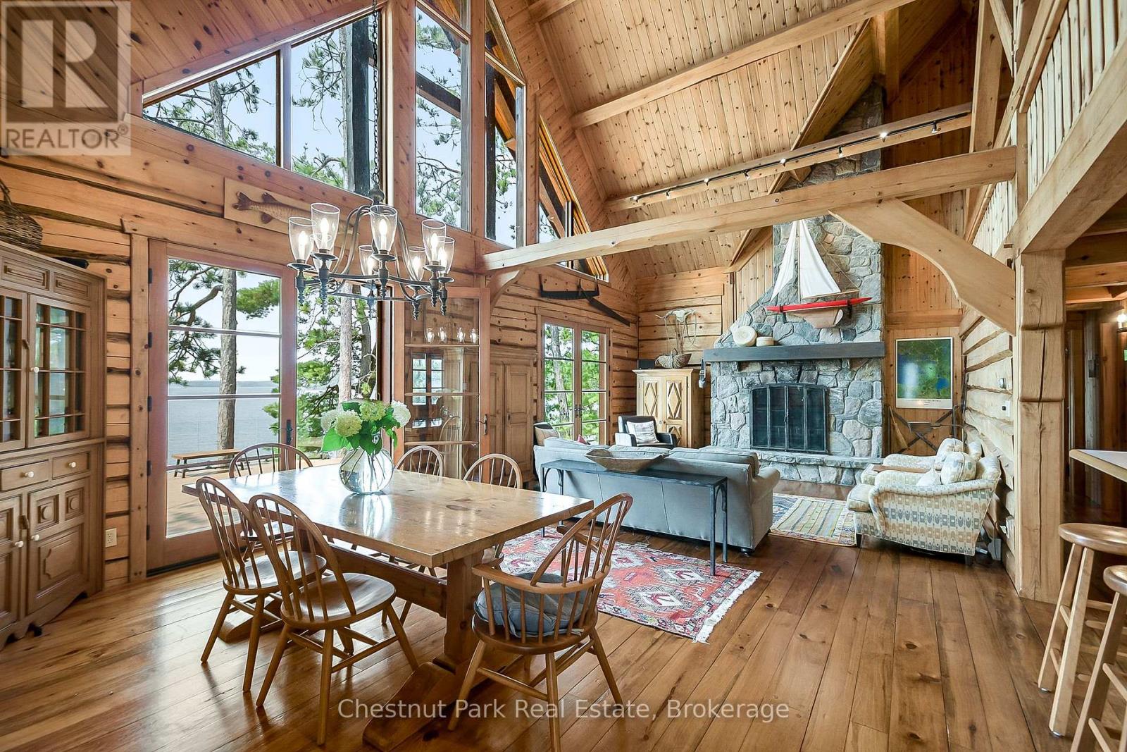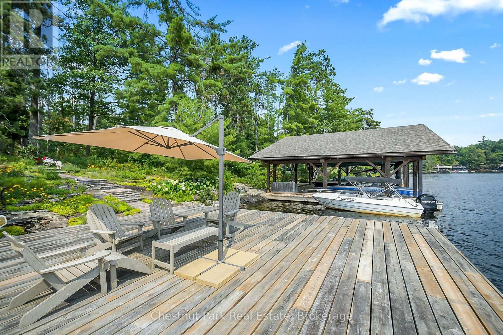 Discover the ultimate in seclusion and serenity with this rare opportunity to own your very own private island on coveted Lake Muskoka. Spanning approximately 2 acres, this unique property offers unmatched privacy, making it the ideal retreat for those seeking an escape from it all, with no other owners or cottages on the island, the space is exclusively yours. A short, scenic boat ride from the marina brings you to the island, where a four-bedroom, 2.5-bath cottage awaits. The interior blends comfort and charm, highlighted by a spacious Muskoka room and expansive deck with glass railings, allowing for uninterrupted views of the shimmering lake. The island is designed for both relaxation and exploration, with winding trails throughout and multiple vantage points, including the incredible Sunset Point, where each evening ends with a breathtaking, panoramic display. Two well-maintained sheds provide ample storage but offer the potential to be converted into bunkies for additional sleeping space. A well-built dock with a boat slip accommodates up to two covered boats, ensuring your watercraft is always ready for adventure. While the cottage is currently a three-season getaway, a simple hot water line upgrade could extend your enjoyment into all four seasons, offering year-round access to one of Muskoka's most treasured locations. This private island retreat offers a rare combination of privacy, natural beauty, and potential, a unique opportunity to create your dream escape in the heart of Lake Muskoka. (id:4069)